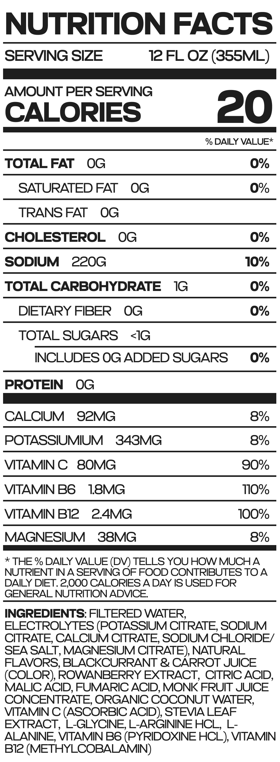 Acts as a natural preservative that keeps the drink fresh and stable. It also supports energy metabolism by playing a role in the citric acid cycle.